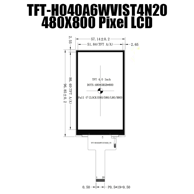 TFT-H040A6WVIST4N20 | 4.0" IPS LCD | 480x800px Screen | No Touchscreen | TFT-H040A6WVIST4N20