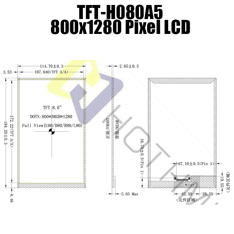 8.0 inch TFT | HD 800 * 1280 | IPS | MIPI interface| TFT-H080A5HDIFT5N40