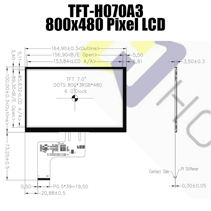 • Model : 7.0 inch TFT /800*480 resoliution/6H/RGB interface/TFT-H070A3SVTFT3N40