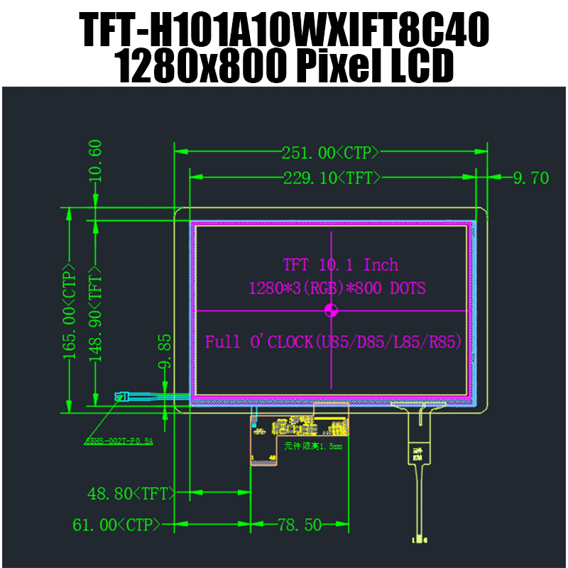 This 10.1 inch TFT LCD display has a 1280x800 resolution screen with IPS technology, which delivers sunlight readable brightness, better color reproduction, better image consistency, and better optical characteristics at any angle. For extra protection, this 24-bit true color TFT also includes an EMI filter on the input power supply line. This 10.1" display is RoHS compliant with LVDS interface, and has a capacitive touchscreen. This 10.1" IPS display has been designed with the same mechanical footprint and pinout and includes the same EK79202B1 driver IC as the TN display, making this a compatible replacement option for the TN models.