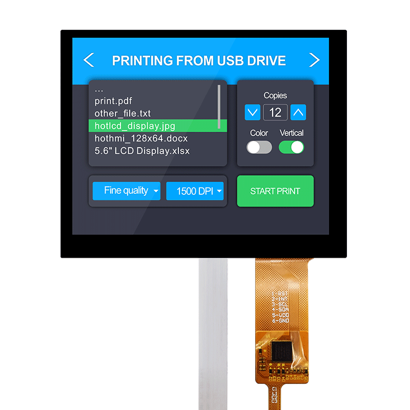 TFT-H056A61VGTWZ3C40 | 5.6" IPS LCD Display | TFT LCD Display Manufacturer | 640x480 resolution | -20℃~70℃ | FOR INDUSTRIAL CONTROL | CAPACITIVE TOUCH SCREEN