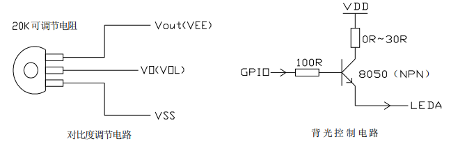 Vout、V0 的連接方法方法及背光用I/O口控制的連接方法:
