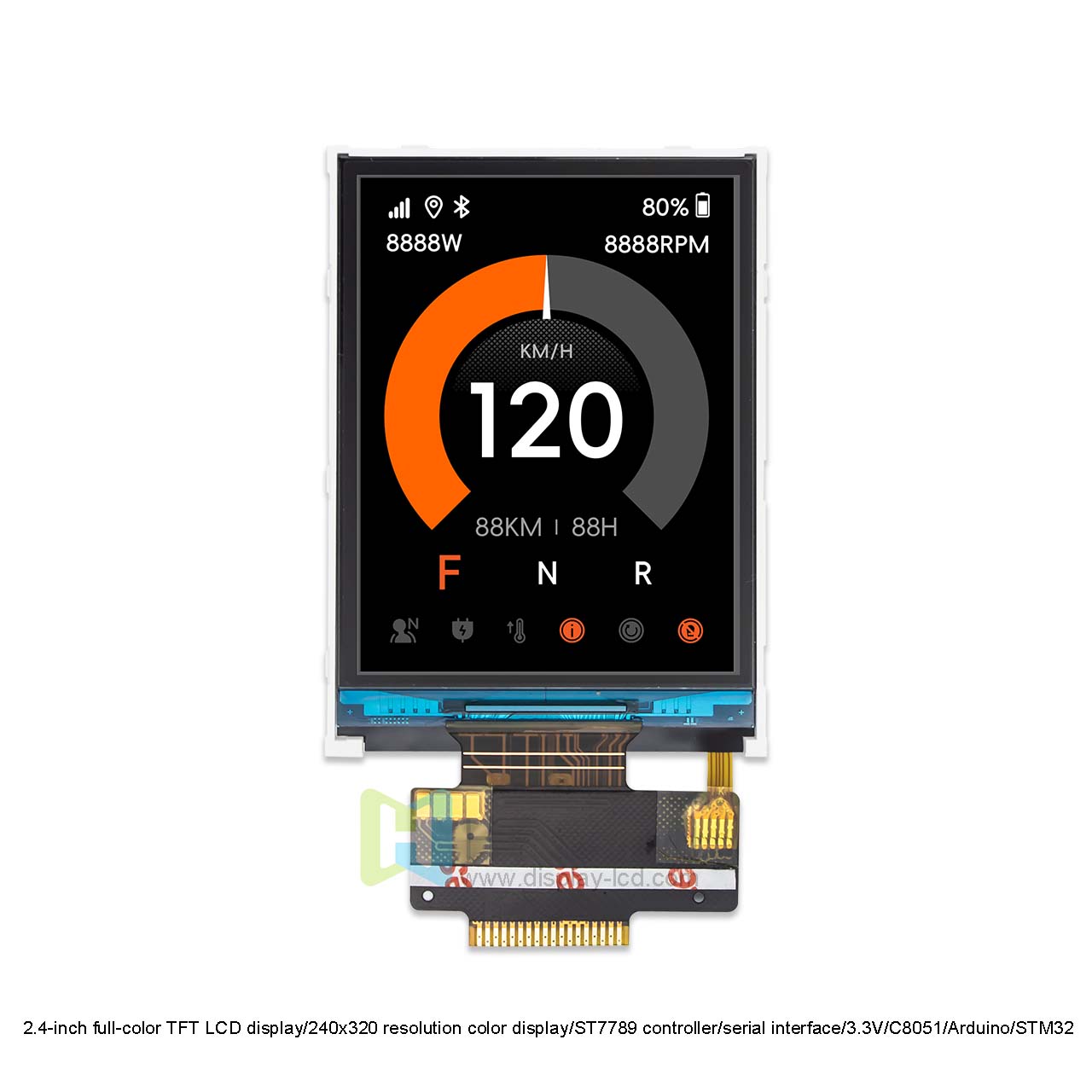 TFT-H024B26QVTST4N18是一款2.4英寸IPS的TFT豎屏液晶顯示屏,分辨率為240x320像素。 該顯示屏具有 800:1 的高對比度,能夠呈現(xiàn)深邃的黑色和鮮艷的色彩。 IPS 技術(shù)可實(shí)現(xiàn)全視角,該顯示器可提供令人驚嘆的清晰度、卓越的高品質(zhì)色彩再現(xiàn)、更好的圖像一致性以及全視角的高對比度。這款型號不帶觸摸功能,我們同款產(chǎn)品還有帶電容或電阻觸摸的版本。內(nèi)置ST7789控制器,SPI串行接口用于將數(shù)據(jù)傳輸?shù)斤@示器。適用C8051/Arduino/STM32系列。適用于廣泛的應(yīng)用,包括工業(yè)控制系統(tǒng)、家庭自動化和便攜式電子產(chǎn)品。該 LCD 采用 FPC連接方式,確保輕松的電氣連接。 我們的顯示器均符合 RoHS 標(biāo)準(zhǔn),并遵守嚴(yán)格的環(huán)境和安全標(biāo)準(zhǔn)。