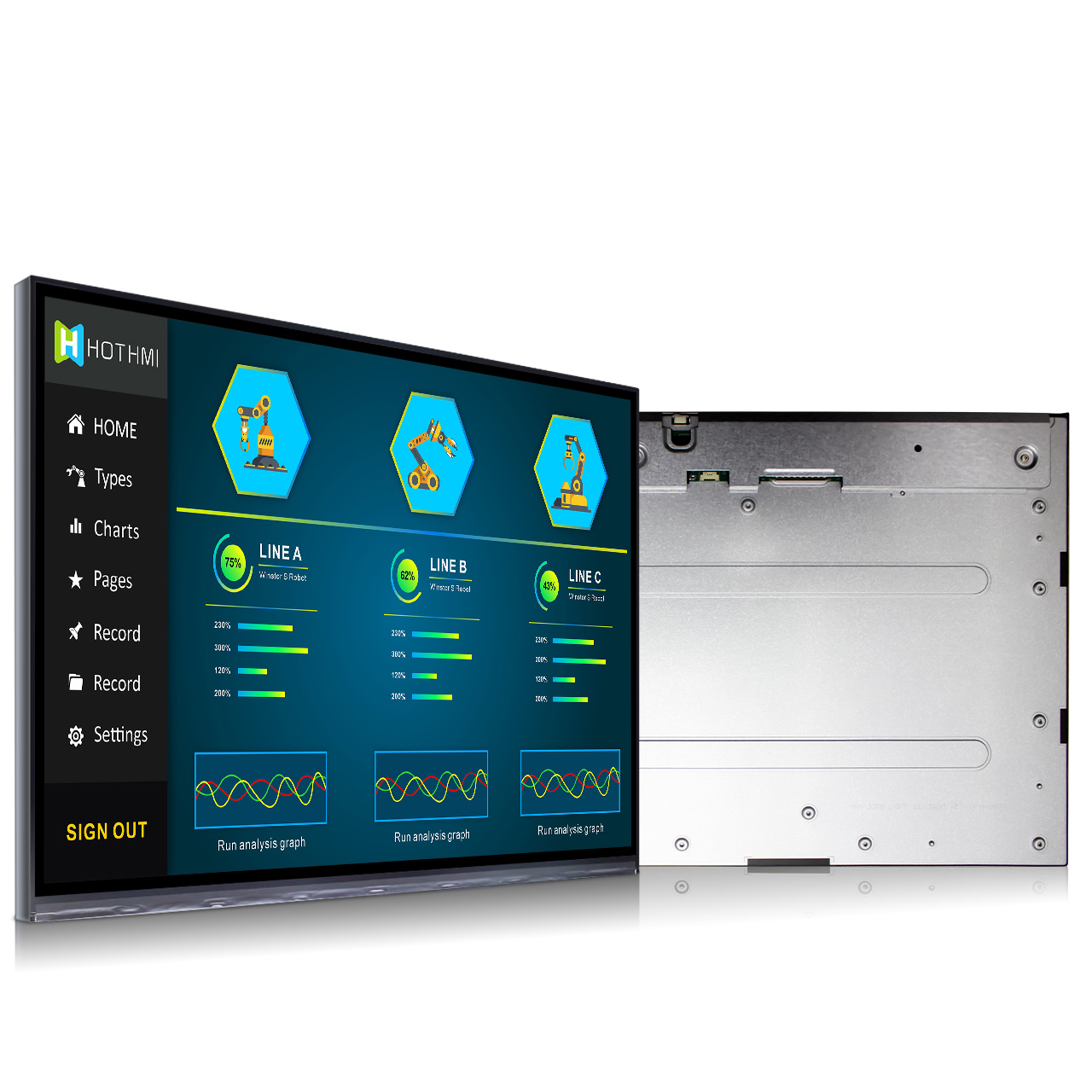 鑒于這款型號(hào)的寬廣顯示區(qū)域以及良好的性能,使之在工業(yè)控制環(huán)境中頗受歡迎。這款型號(hào)目前是不帶外殼的,同尺寸型號(hào)我們還有帶外殼的版本。用戶也可以根據(jù)實(shí)際使用需求,對(duì)外殼進(jìn)行定制化。