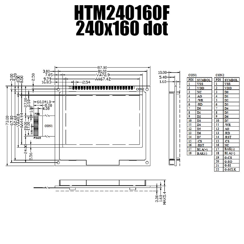 • 型號(hào): 240x160 點(diǎn)陣液晶模組/HTM240160F