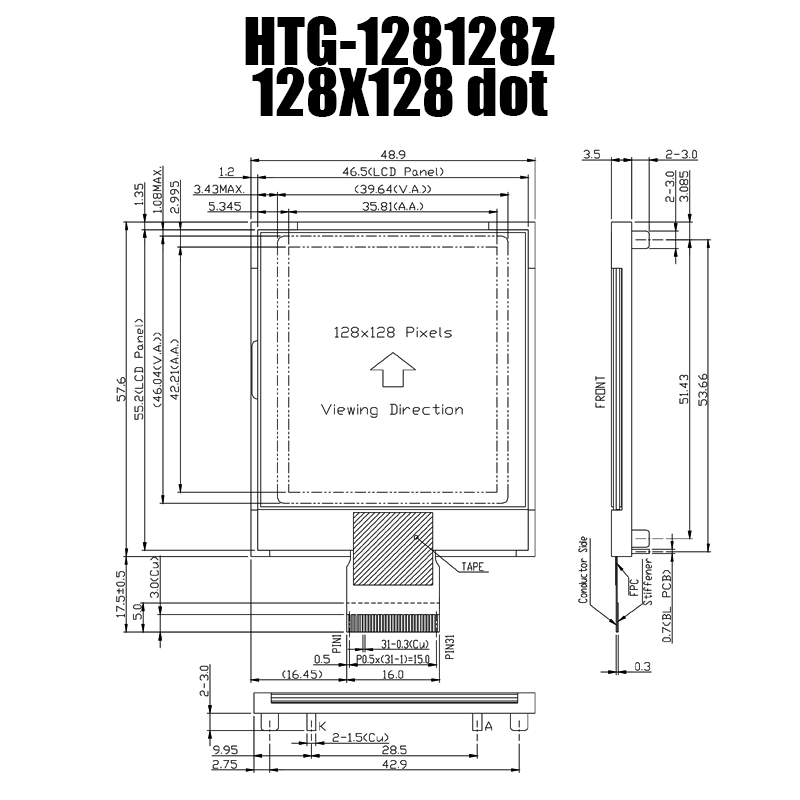 • 型號: 128x128COG點陣液晶模組/手持,醫(yī)療設(shè)備顯示屏/HTG128128Z