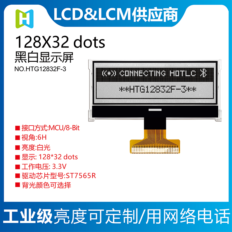 • 型號: 128x32 COG點陣液晶屏/HTG12832F-3