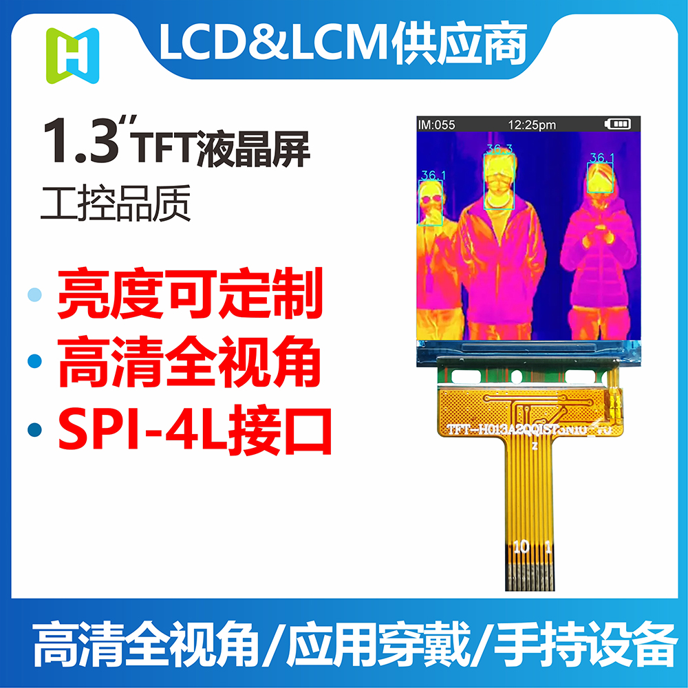 這款1.3寸TFT彩屏,非常適用于手持式紅外測(cè)溫槍顯示屏(紅外測(cè)溫儀顯示屏),支持SPI接口,具有尺寸方正、結(jié)構(gòu)緊湊、高亮度、全視角、色彩豐富的特點(diǎn),顯示數(shù)據(jù)一目了然。