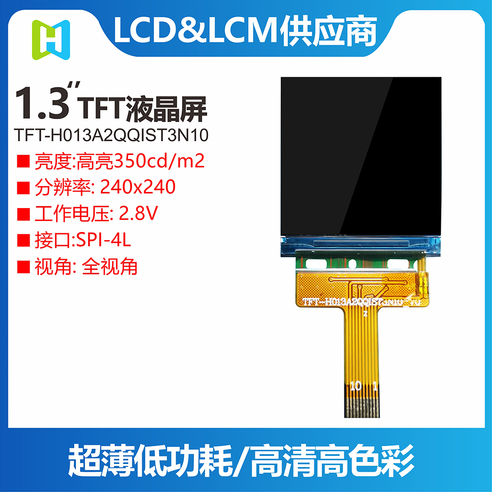 • 型號(hào): 1.3寸方形TFT/全視角/方屏240*240分辨率/全視角/TFT-H013A2QQIST3N10