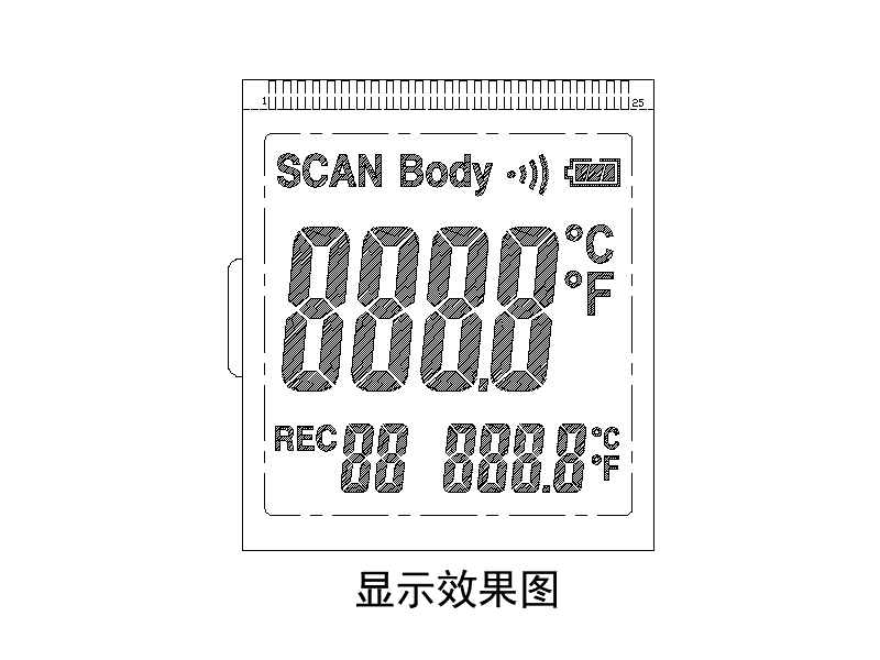 (英文版)紅外測溫槍顯示屏|額溫槍LCD|體溫槍液晶屏HTP68457