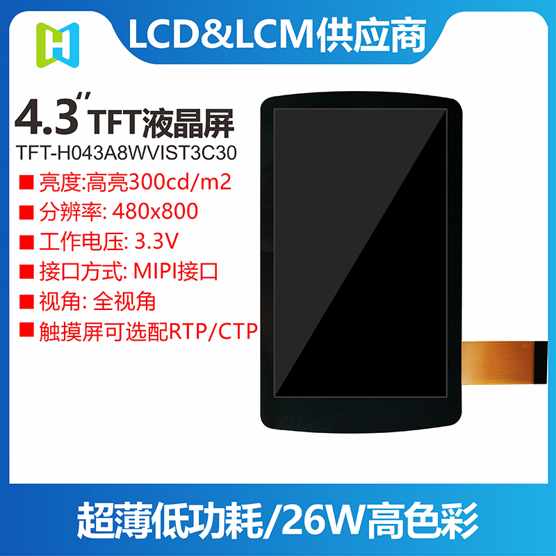 • 型號(hào): 4.3寸顯示屏 TFT豎屏MIPI接口 480800分辨率 IPS全視角工控4.3TFT-H043A8WVIST3C30