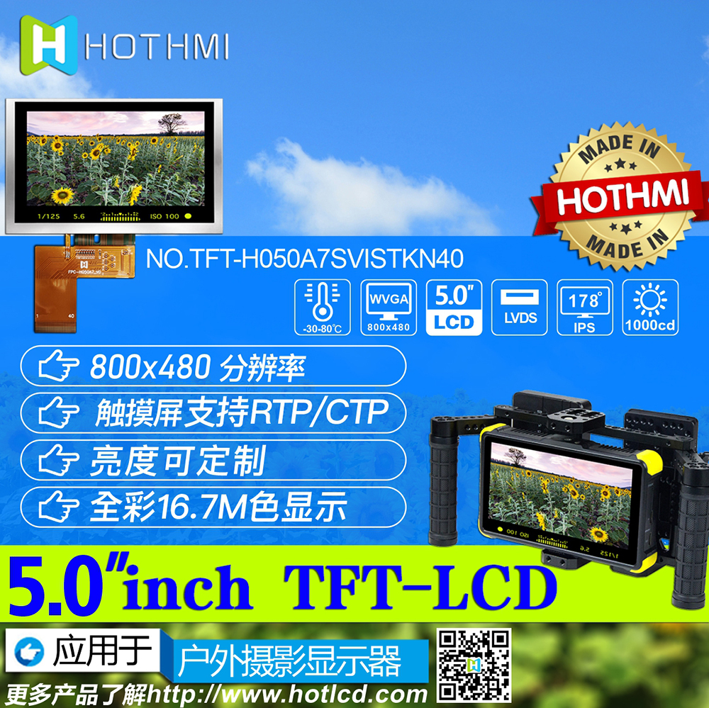 TFT-H050A7SVISTKN4為800x480點(diǎn)5英寸彩色tft lcd液晶顯示屏,采用ST7262驅(qū)動(dòng)IC,1000cd/m2亮度在陽光下可視,顯示質(zhì)量優(yōu)越,超寬視角,易于由8051、PIC、AVR、ARDUINO、ARM和Raspberry PI等MCU控制,所有材料均符合環(huán)保要求RoHS標(biāo)準(zhǔn)。