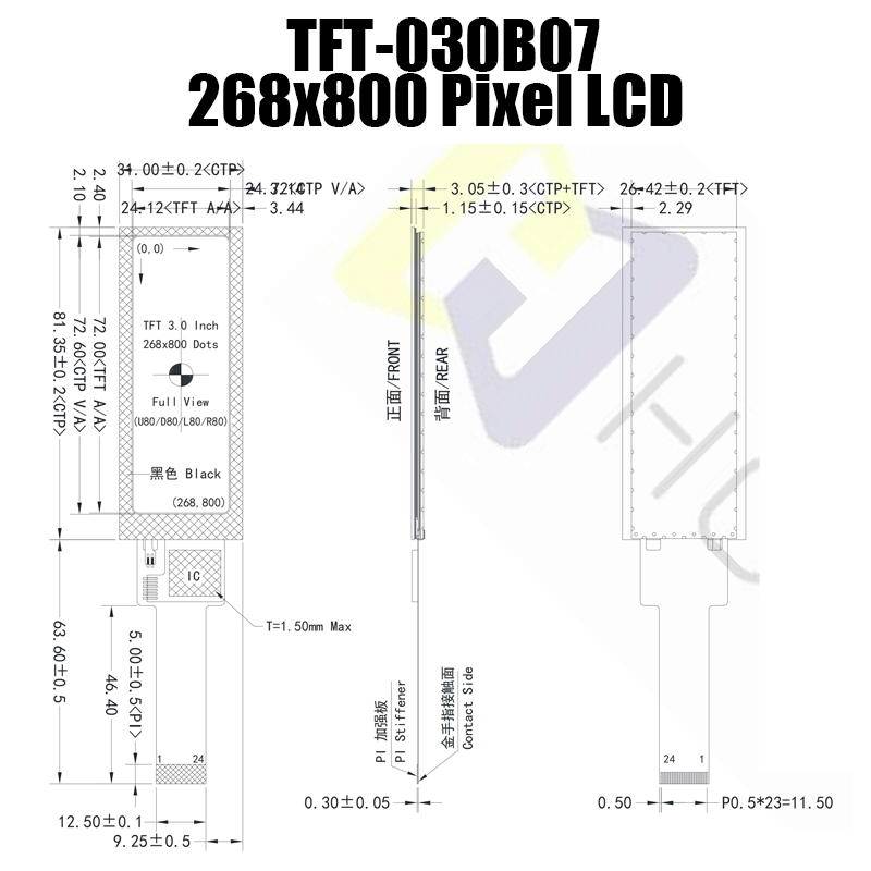 3.0 Inch 268x800 IPS Capacitive TFT LCD Display wide temperature/TFT-H030B07ZCIST8C24 11