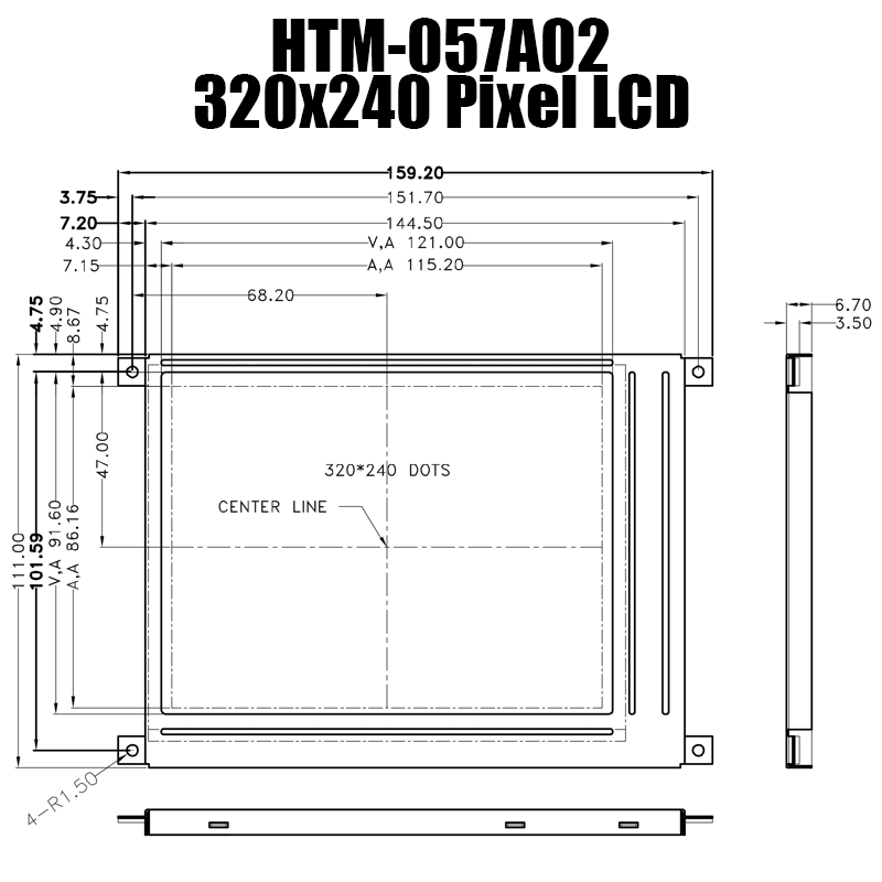 5.7寸 TFT 單色液晶顯示器 320x240 分辨率 陽光下可讀適應(yīng)寬溫 TFT-HTT057A02