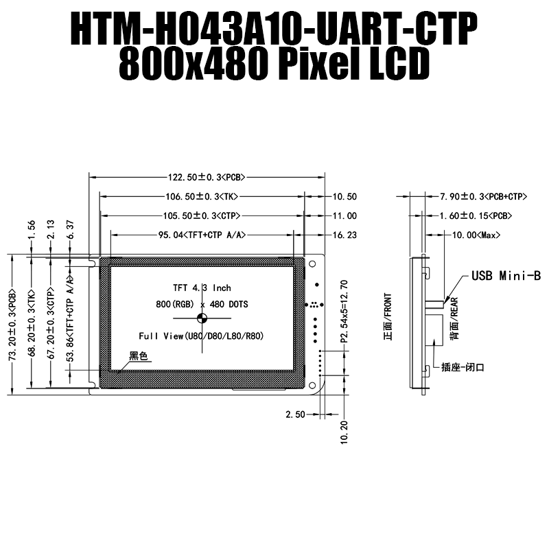• 型號(hào): 4.3寸 UART 電容式觸摸屏 TFT LCD 800x480 顯示屏帶 LCD 控制板智能屏 HTM-H043A10-UART-CTP