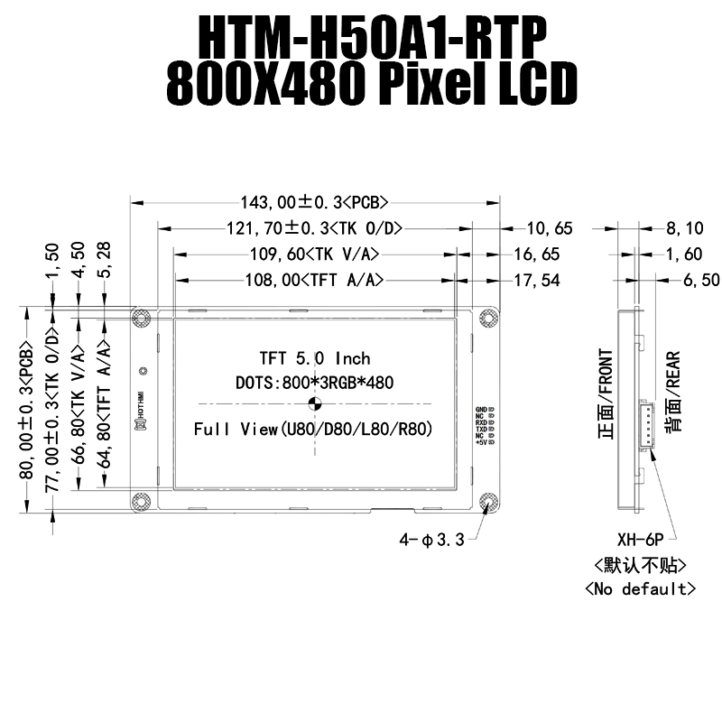 5英寸對角線彩色TFT屏,標(biāo)配無觸摸/電阻觸摸/電容觸摸