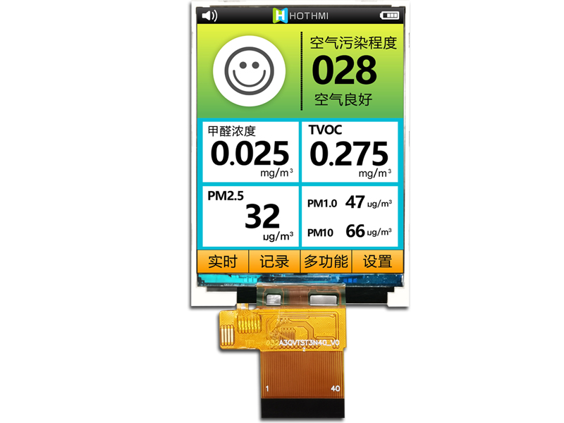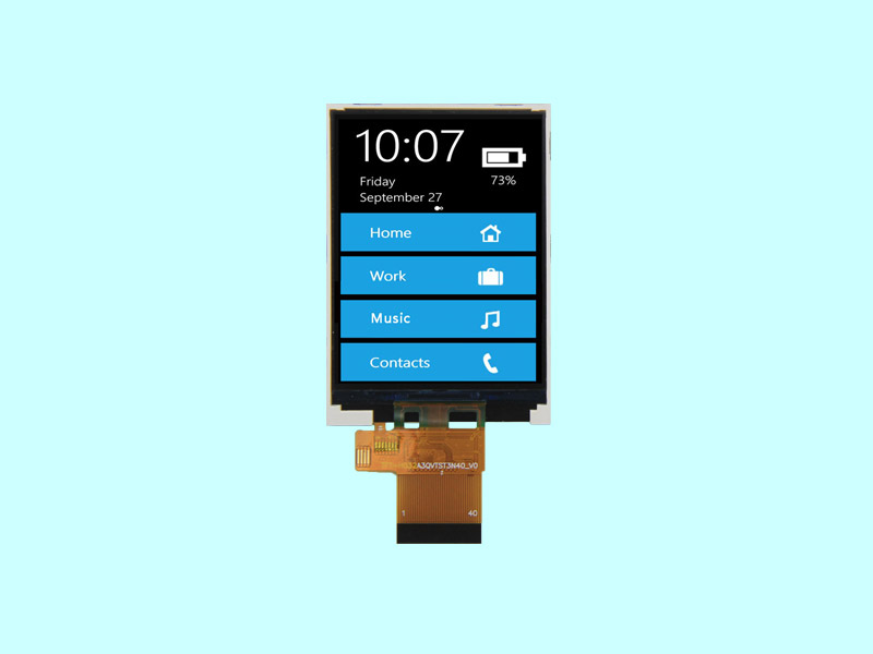 3.2寸TFT/240x320分辨率/SPI串口并口/TFT-H032A2QVTST3N40 TFT豎屏 240x320 54.0x73.3x2.9 3.2 3.2 47.88x63.84 3H 350cd/m2 FPC-40PIN MCU 抗靜電ESD 8KV -20~70℃ 2.8V ST7789V
