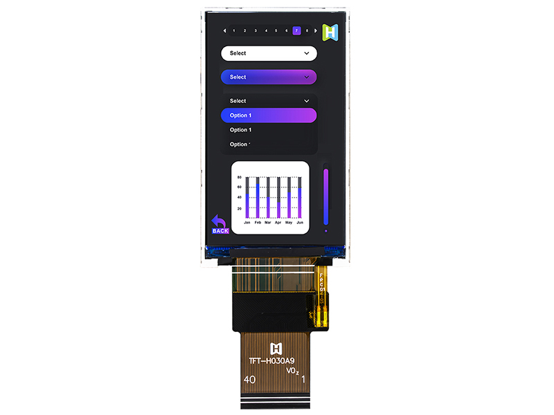 3寸IPS TFT 液晶彩色液晶顯示屏RGB 360x640像素 TFT-H030A9NHIST4N40 TFT豎屏 360x640 43.68x77.02x2.3 3.0 3.0 36.72x65.28 全視角 400cd/m2 40pin RGB 抗靜電ESD 8KV -30~80℃ 3.3V ST7701