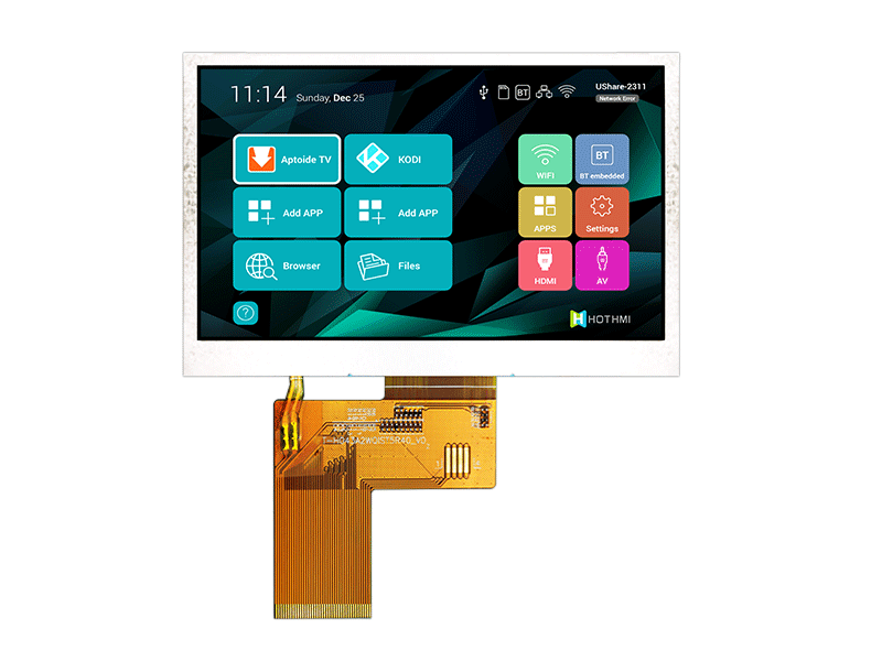 4.3英寸480x272彩色高亮度IPS TFT LCD/全視角陽光下可視TFT/RGB接口/STM32/RK系列 TFT-H043A21WQISTKN40 TFT顯示屏 480x272 105.46x67.11x4.5 4.3 4.3 95.04x53.86 IPS全視角 1000cd/m2 FPC-40 pin MCU 防靜電ESD 8KV -30~80℃ +3.3 V SC7283