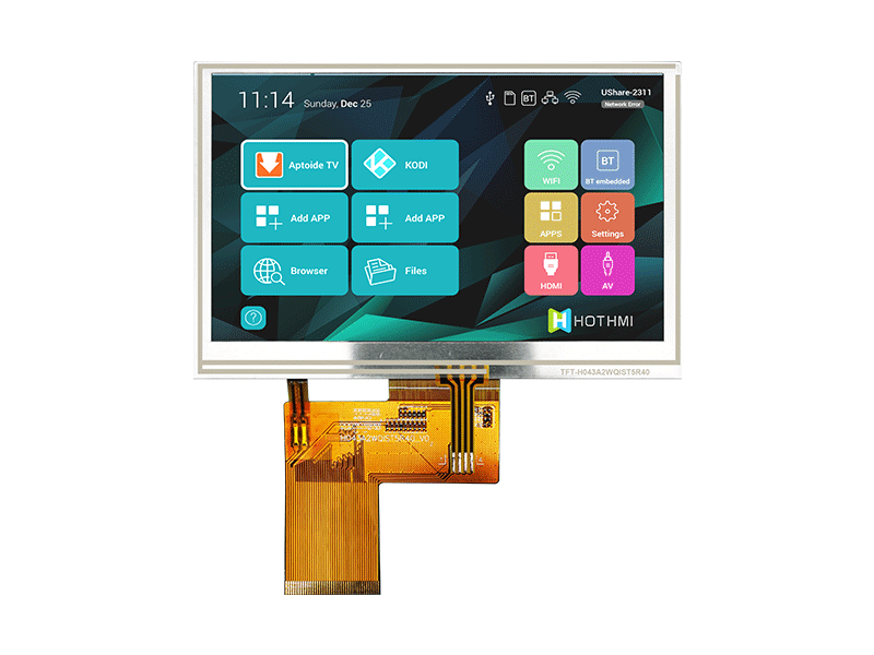 4.3英寸480x272IPS寬溫電容觸摸顯示屏/NV3041/SPI/C8051/Arduino/STM32/陽光下可視 TFT-H043A22WQINV8C40 TFT顯示屏 480x272 105.46x67.09x4.5 4.3 4.3 95.04x53.86 IPS全視角 800cd/m2 FPC-40 pin SPI 防靜電ESD 8KV -30~80℃ +3.3 V NV3041