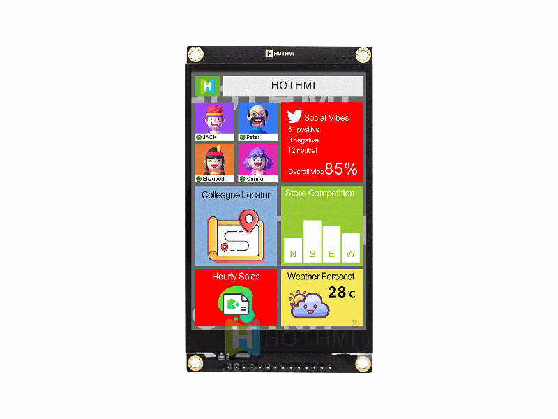 4寸SPI顯示模塊分辨率320x480帶ST7365 HTM-H040A28-SPI-A01 TFT顯示模組 320x480 61.0x108.0x2.5 4.0 4.0 55.68x83.52 IPS全視角 400cd/m2 SPI 防靜電ESD 8KV -20~70℃ +3.3 V ST7365