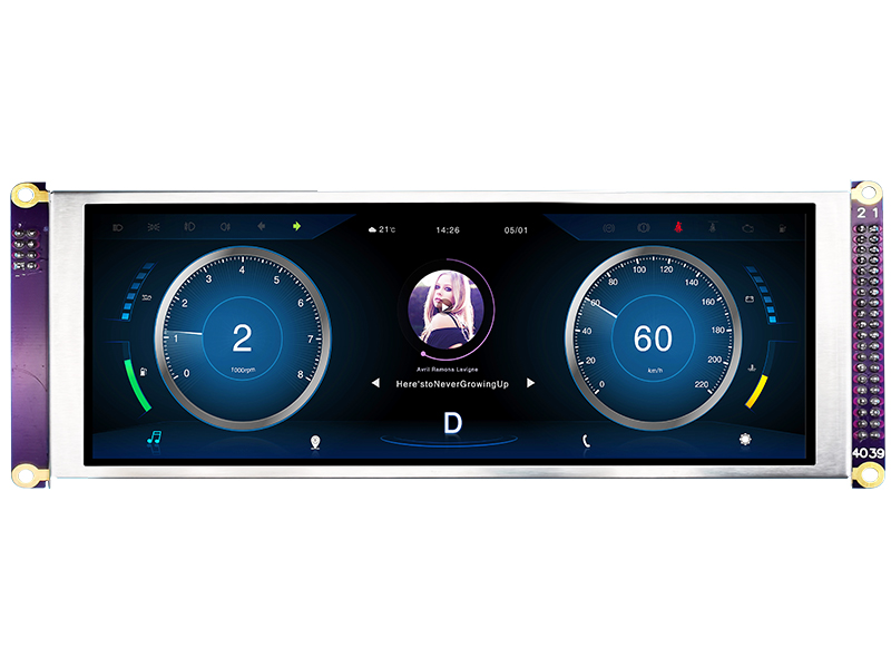 7.84寸條形TFT液晶顯示屏1280x400MCU適用于車載 HTM-TFT078A01-MCU TFT帶板模塊 1280x400 221.8×71.8×9 7.84 7.84 190.88x60.2 全視角 450cd/m2 48pin MCU 抗靜電ESD 8KV -20~70℃ 3.3V RA8889